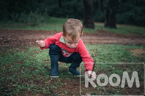 niño en el bosque buscando hormigas