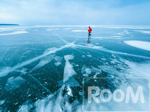 One men filled with wanderlust and a desire for a healthy lifestyle is enjoying his risky outdoor journey across a frozen lake.