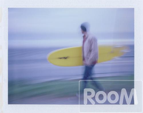Blurred motion shot of a man carrying a surfboard, California, USA