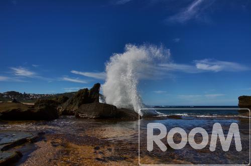 Waves crashing onto rocks