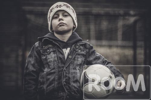 Proud young boy holding his football on a small football court. Captured at a children's playground in Norway.
