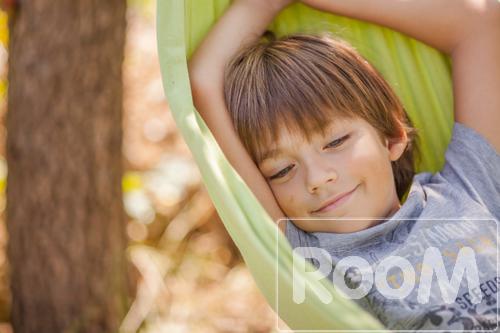 Smiling little boy resting in hammock