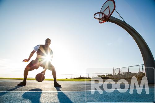 A mid 20's black male plays basketball in a beautiful location in southern california that overlooks the ocean. A fitness athlete excercises by shooting hoops in a park that overlooks the pacific ocean in Los Angeles. Shots, hoops, dunks, slamdunk