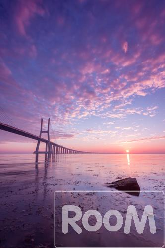 The Vasco da Gama bridge, an architectural landmark of Lisbon, Portugal, photographed by dawn