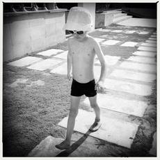 Boy in sun hat and sunglasses