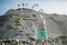 boy at the beach running fr... -