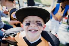 Boy holding a baseball, Ora... -