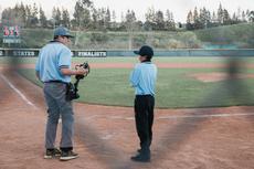 umpires talking at the base... -