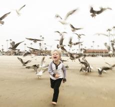 Boy chasing seagulls on bea... -