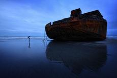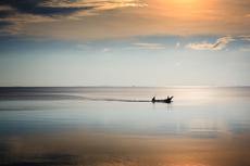 Boy walking on beach at sunset #51713 -