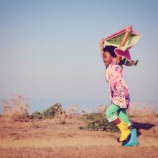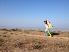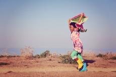 Girl running holding scarf ...