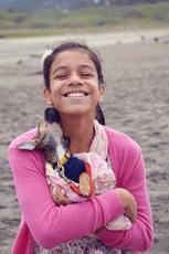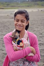 Smiling girl cuddling a puppy #54431 -