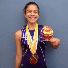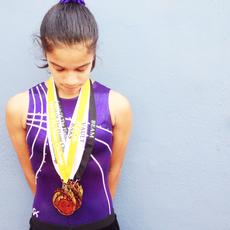 Girl wearing gymnastics medals