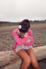 Girl cuddling puppy #54435 -