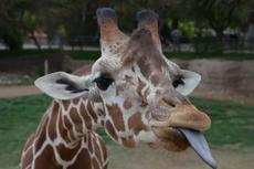 giraffe sticking out its to...