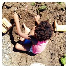 Girl sitting on ground play...