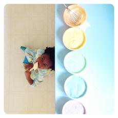 Girl sitting on floor licki...