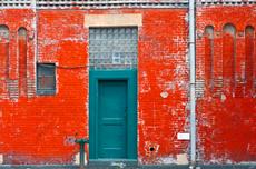 red wall, blue door -