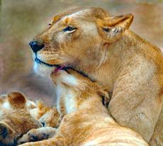 Lioness with her cubs -