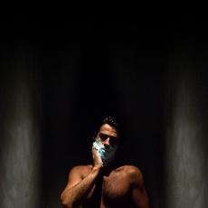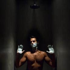 Portrait of a man showering -