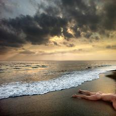 Naked man lying on the beac...