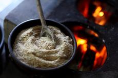 Bowl of Farofa by a stove #120210