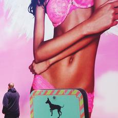 Man passing lingerie advert... -