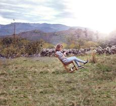 Woman sitting on a leaning ... #27776 -