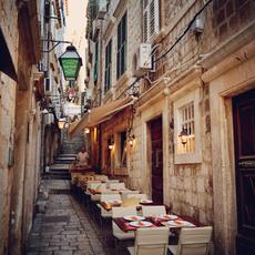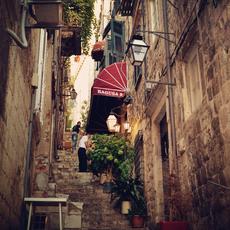 Stairs in narrow alleyway -
