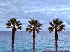 Three palm trees in a row, ... -