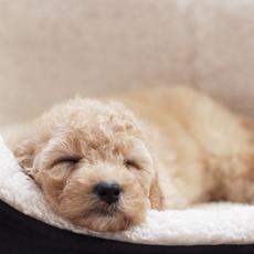 Puppy dog sleeping in basket #35763 -
