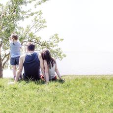 Father sitting by sea with ... #35115 -