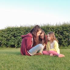 Three girls sitting in a ga... -