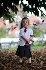 Girl throwing leaves in the... -