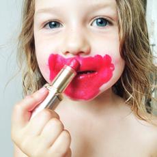 Girl putting on lipstick -