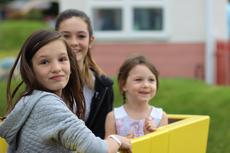 Three girls on ride an funfair -