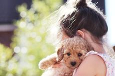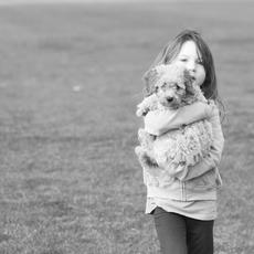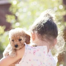 Girl holding puppy dog -