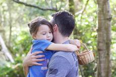 Father sitting on a sofa hu... -