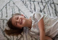 Smiling girl lying on carpet #30989 -