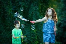 Boy and girl blowing giant ... #83358 -