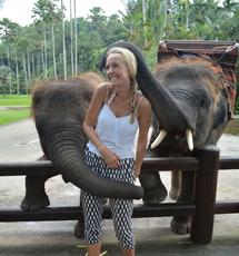 Woman with elephants
