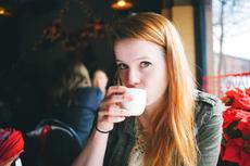 Woman drinking hot tea in a... #40049 -