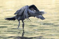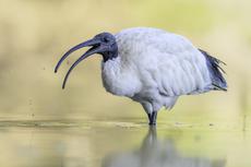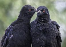 A pair of black swans float... -