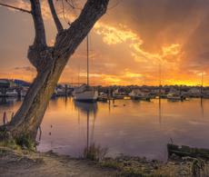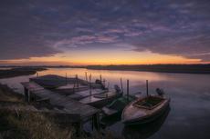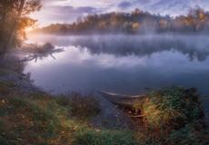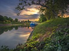 Boat on a riverbank at sunr... #202298 -