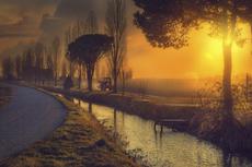 Roadside canal at sunset, V... #200727 -