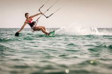 Smiling woman kitesurfing -