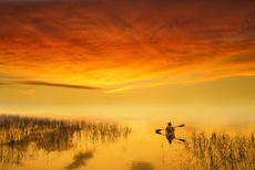 Man paddling in canoe acros... #42859 -