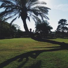 Man resting on a palm tree -