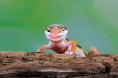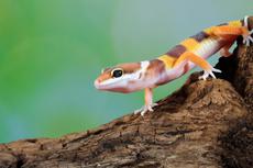 Orange gecko lizard on wood... -