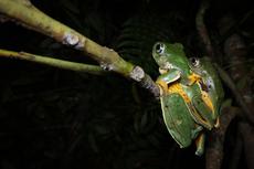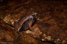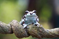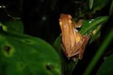 Tiny amazon milk frog on br...